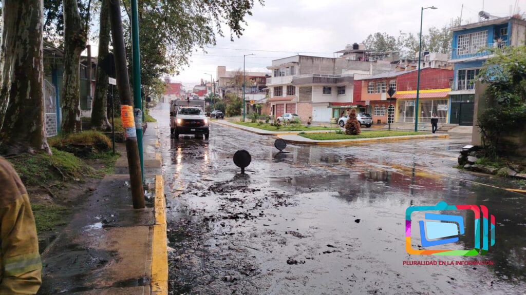 Asimismo, un vehículo Volkswagen resultó afectado por acumulación de agua en la colonia Obrero Campesina, aunque no se registraron mayores consecuencias.