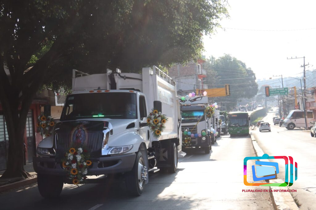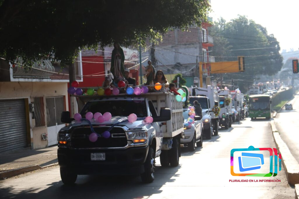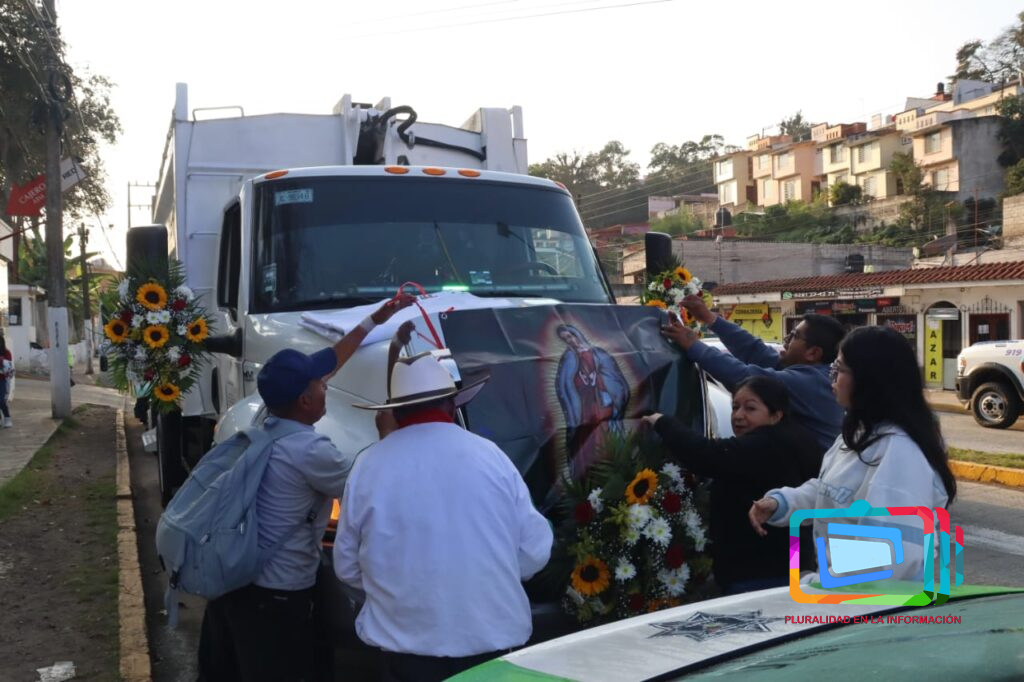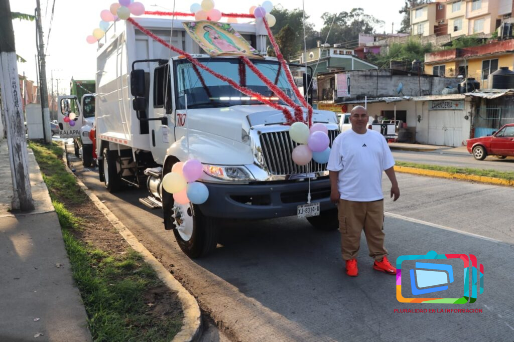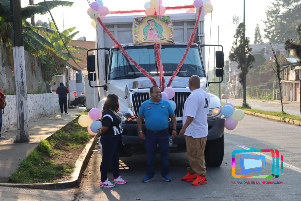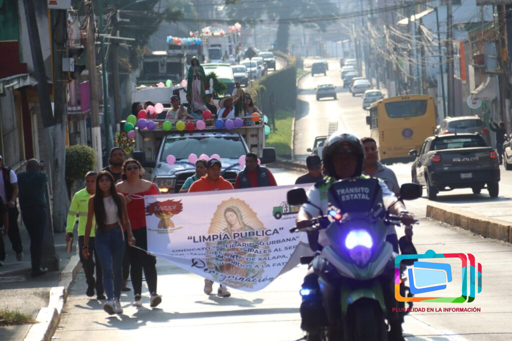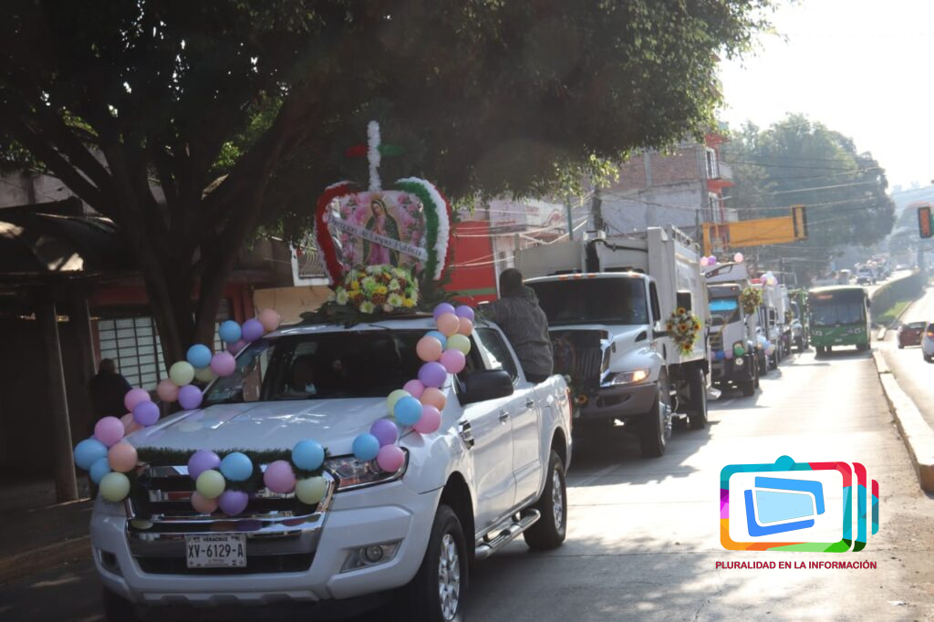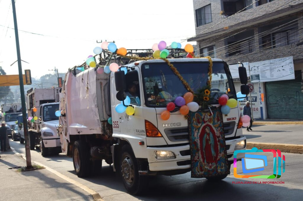 Xalapa, Veracruz a 7 de diciembre de 2025.- Abordo de sus unidades que diariamente conducen y adornadas para la ocasión, realizan su peregrinación, con destino al Santuario de la Virgen de Guadalupe en el barrio del dique, acompañados principalmente de sus familiares, su recorrido inició en la avenida Rébsamen y otras arterias ,cómo la avenida Enríquez, Úrsulo Galván, etc., haciendo sonar las campanas que diariamente hacen cuando recolectan los residuos en las diferentes colonias.