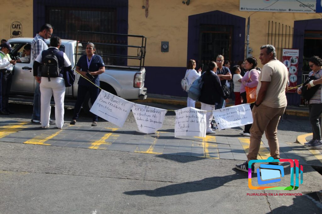 Xalapa, Veracruz a 19 de diciembre de 2025.- Trabajadores del sector Salud se manifestaron este jueves a las afueras de distintos hospitales para exigir que el bono navideño que reciben cada año sea entregado en efectivo y no mediante vales de despensa, como fue determinado para este 2025.