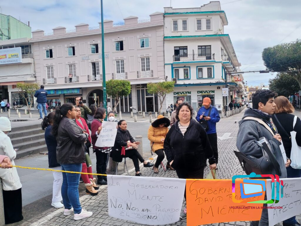 Xalapa, Veracruz a 30 de diciembre de 2025.- Trabajadores del sector salud se manifestaron este día para exigir el pago inmediato del bono navideño, el cual aseguran no ha sido entregado ni en efectivo ni en vales, pese a que autoridades estatales afirmaron públicamente que ya se había cumplido con esta prestación.