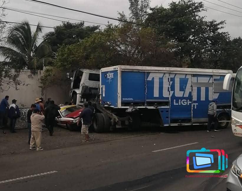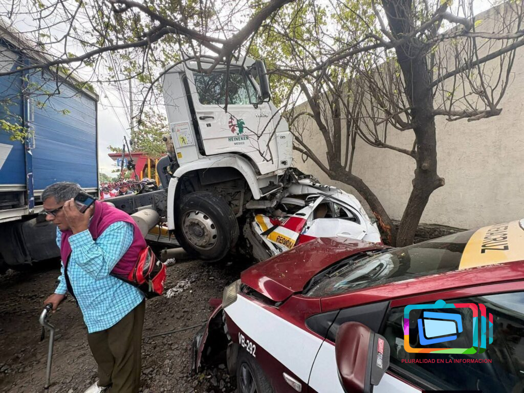 ​Veracruz, Veracruz a 6 de febrero de 2026.– El asfalto de la carretera Veracruz–Xalapa se tiñó de drama y fierros retorcidos la mañana de este viernes, cuando un «monstruo» de acero, cargado de cerveza, protagonizó una carambola de pesadilla que por poco termina en tragedia fatal a la altura de la colonia Las Bajadas.