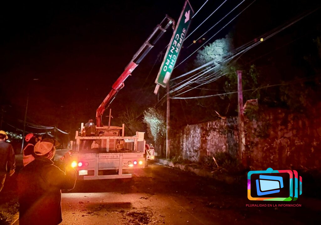 Desde las primeras horas de este lunes la mayoría de las zonas afectadas recuperaron el suministro eléctrico y se mantienen actividades de remoción de árboles y de limpieza por las Direcciones de Medio Ambiente, Limpia Pública y la Comisión Municipal de Agua y Saneamiento (CMAS).