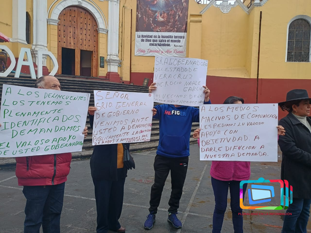 Xalapa, Veracruz a 9 de enero de 2025.- Se manifestaron en la plaza Lerdo para denunciar los robos y asaltos con violencia de los que son víctimas en dicha zona, así lo denunciaron los habitantes de la colonia Niños Héroes de Xalapa.