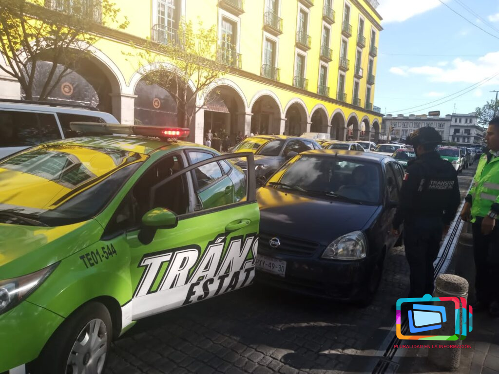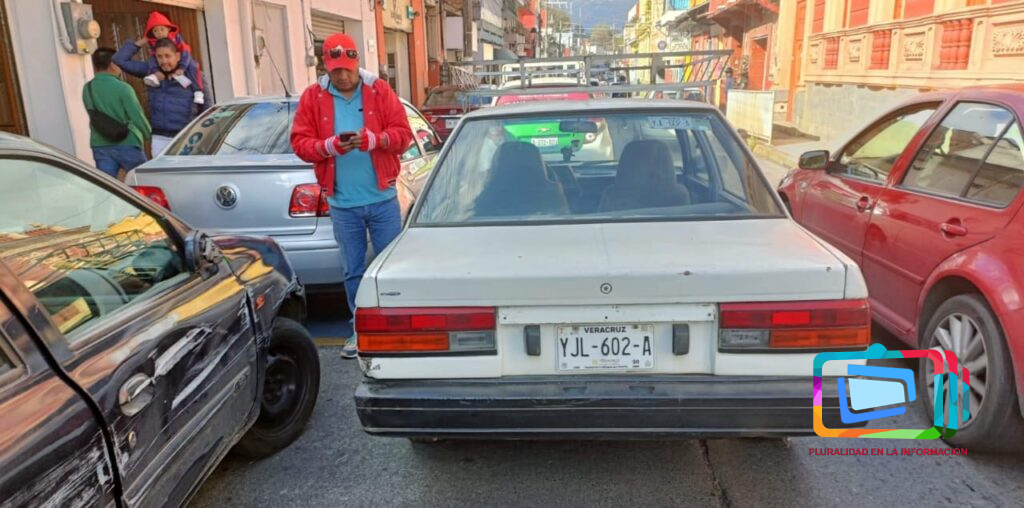 Xalapa, Veracruz a 20 de diciembre de 2023.- Detienen a conductores de un vehículo platina de color azul marino de placas de circulación PXY-49-30 del estado de Morelos después de que ocasionarán varios accidentes en la zona centro de Xalapa.