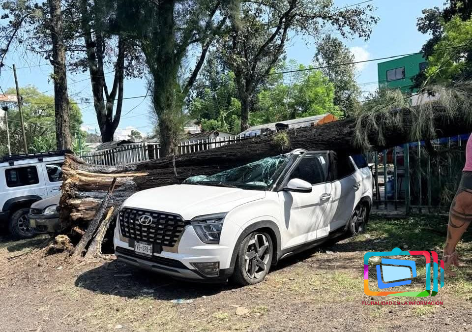 De acuerdo con los primeros reportes, el árbol cayó sobre cables de alta tensión, lo que ocasionó un corte de luz en colonias como la 22 de Septiembre.