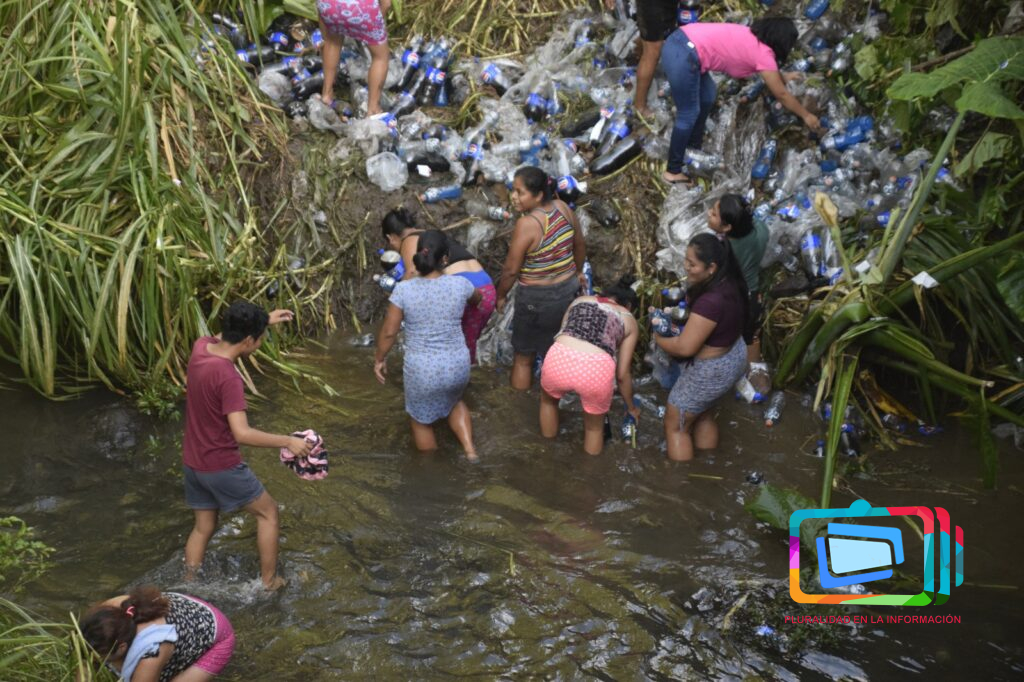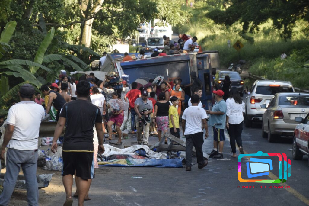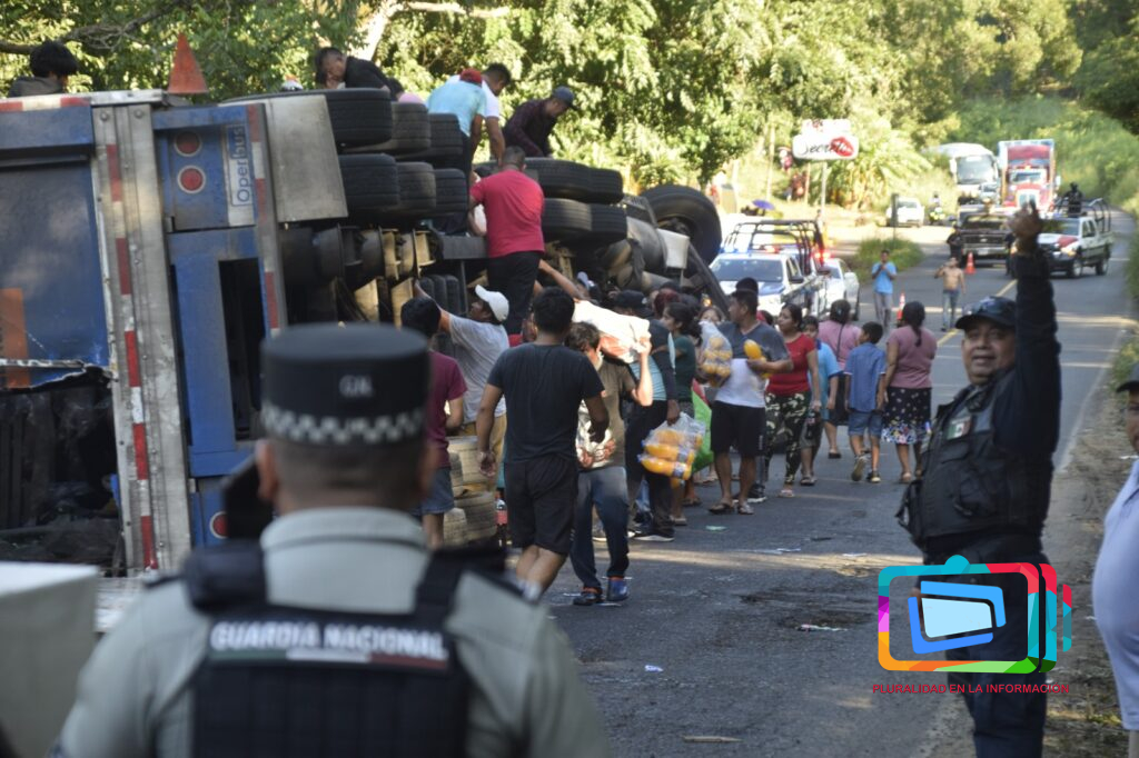 El gigantesco remolque fue vaciado en menos de una hora por los mismos pobladores que no lograron medir el riesgo de vidrios, fierros retorcidos o el riesgo de una posible explosión, en la descarga conocida como rapiña participaron hombres y mujeres de todas las edades.