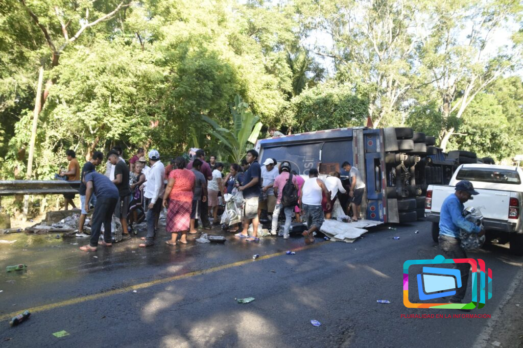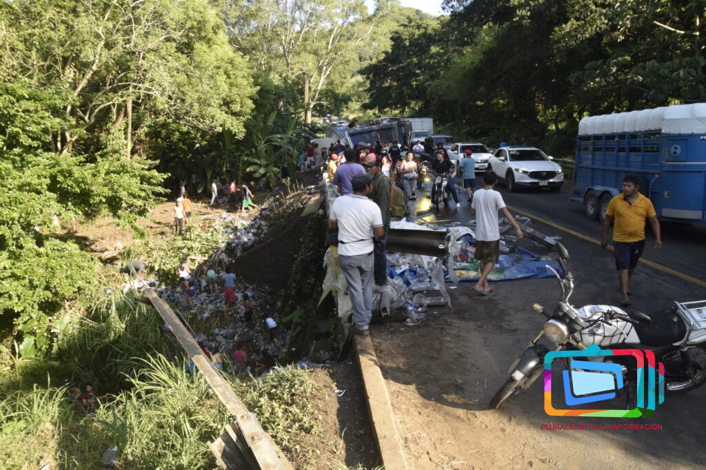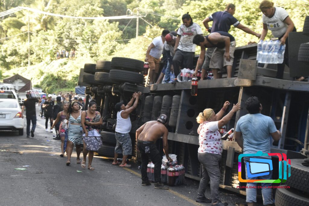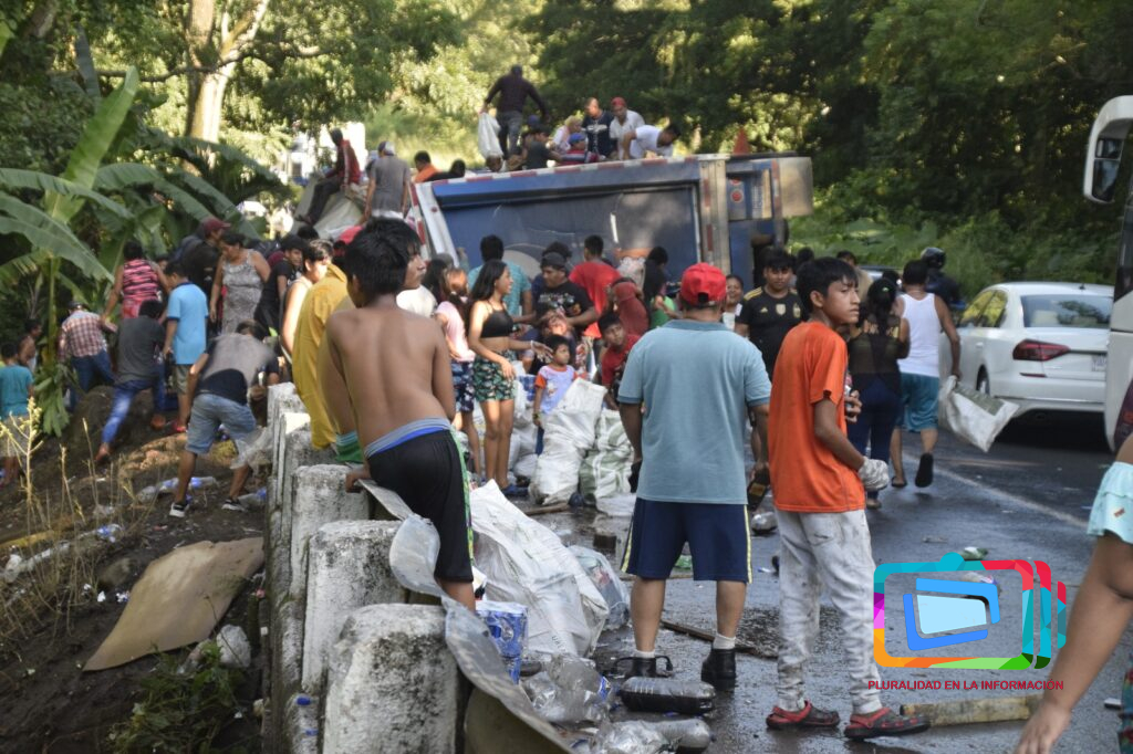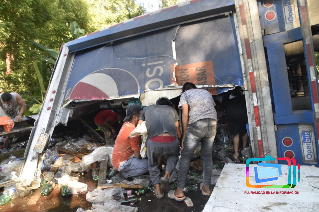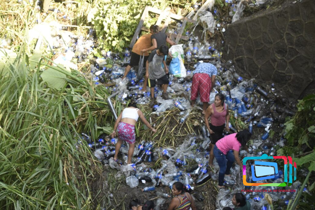 Todo el producto que provenía del centro de distribución de Paso del Toro con dirección a San Andrés Tuxtla quedó en gran cantidad dentro del contenedor, otra porción estuvo esparcida sobre la vía federal y una parte menor cayó al arroyo que proviene de la comunidad de Tepanca y atraviesa Los Pinos, hasta donde la población bajó para rescatar el producto carbonatado.